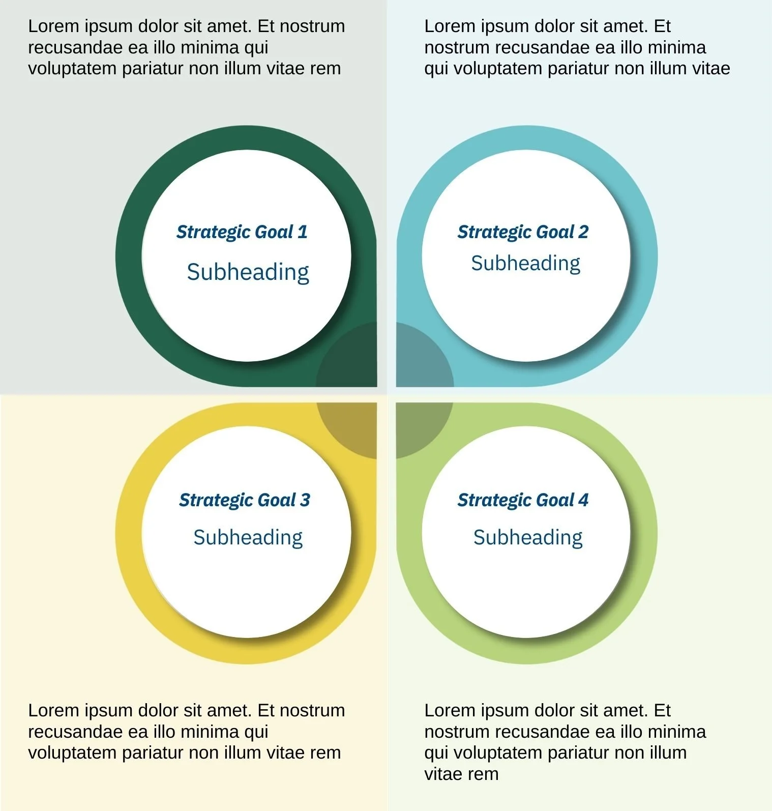 I designed infographics translating SWOT findings and strategic goals into visual representations that make sense at a glance.